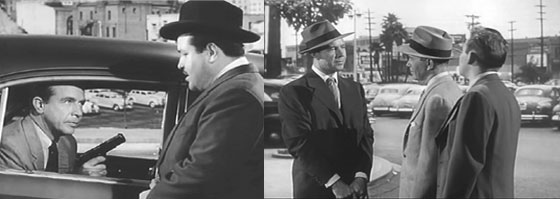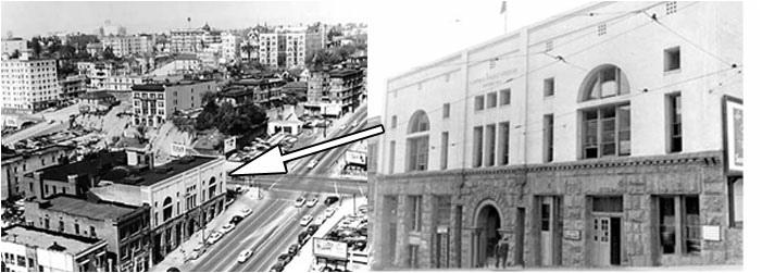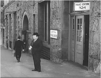 At right a dapper William Conrad emerges from a police station. This was actually the Central Division Patrol station located at First and Hill Streets as seen in the photos below. This was the oldest police station in use at the time and was demolished four years after the film was made.