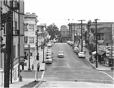 These photos were taken in 1955 and you will notice the traffic signals at the intersection.