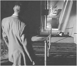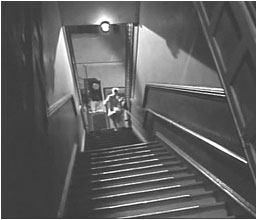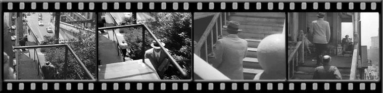 In the film sequence below John Doucette climbs the stairs and enters the Sunshine where Dan Dureya’s gang is planning their heist in 1948’s Criss Cross. The top balcony as seen in the last frame overhangs the stairs with a view of the city below.