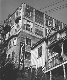 At right: Demolition begins on the Hillcrest Hotel in September of 1961.