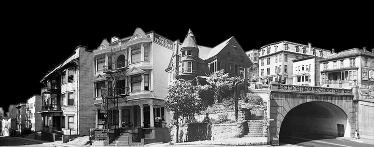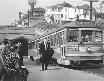 The streetcar has just come through the tunnel known as the Hill Street Portals. Burt Lancaster gets off the “Red Car” on Hill Street . The house used in the film is above on the hill.