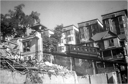 Angels Flight continued to run as all the buildings around it were demolished as redevelopment started.