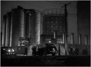 The gas works provides an ominous nighttime backdrop for 1942’s This Gun For Hire.