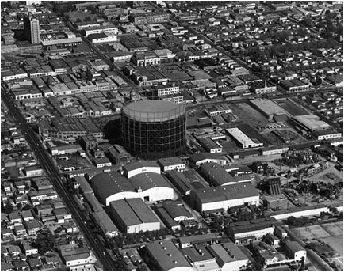 Below: Even as high rise buildings began to appear in the 1960s, the gas works still dominated the landscape.